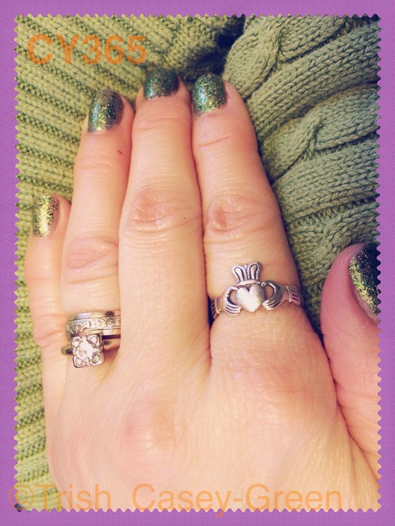 17. A Shamrock—Ok, not really. But St. Patrick’s Day nails, and my lovely green sweater. But mostly, my Claddagh rings! My first gift from my husband is the silver Claddagh, and my wedding band is Claddaghs as well!