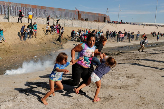 Mexican children fleeing tear gas. Kim Kyung-HoonReuters