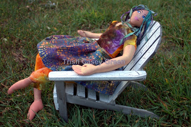 Twitchy believes that she should be somewhere on a sandy beach (cabana boys bringing her mojitos) looking for inspiration, not stuck sitting on a shelf in my studio…