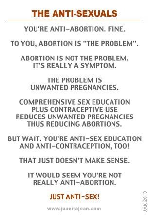 So, to summarize, ladies. You should think before you act, or keep your legs closed. (The man trying to get them open is totally blameless) If you can’t afford contraception for whatever reason, you have no business having sex. If you are married, you still have no business having sex if you can’t afford a (another) child…so,wait. Hold up a sec. See the slope? Be careful, it’s slippery. The only people who have any right to have sex are married couples who have the financial and emotional stability to support a new child every 11 months or so. So. Explain to me how it is so many upper income, religious, or educated families have 1 or 2 children, max? Guessing the little lady has cut you off?